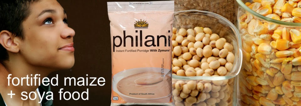 Benefit from the nutritional value of Soya and maize in the precooked Philani Yabantwana (children 1-10yrs) and Philani (adults)Porridges (mix with hot water and ready to go) 2 servings a day for children and one serving for adults ( one serving is equivalent to 100gm for every 250ml hot water) giving 100% NRV per serving.